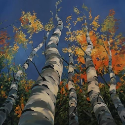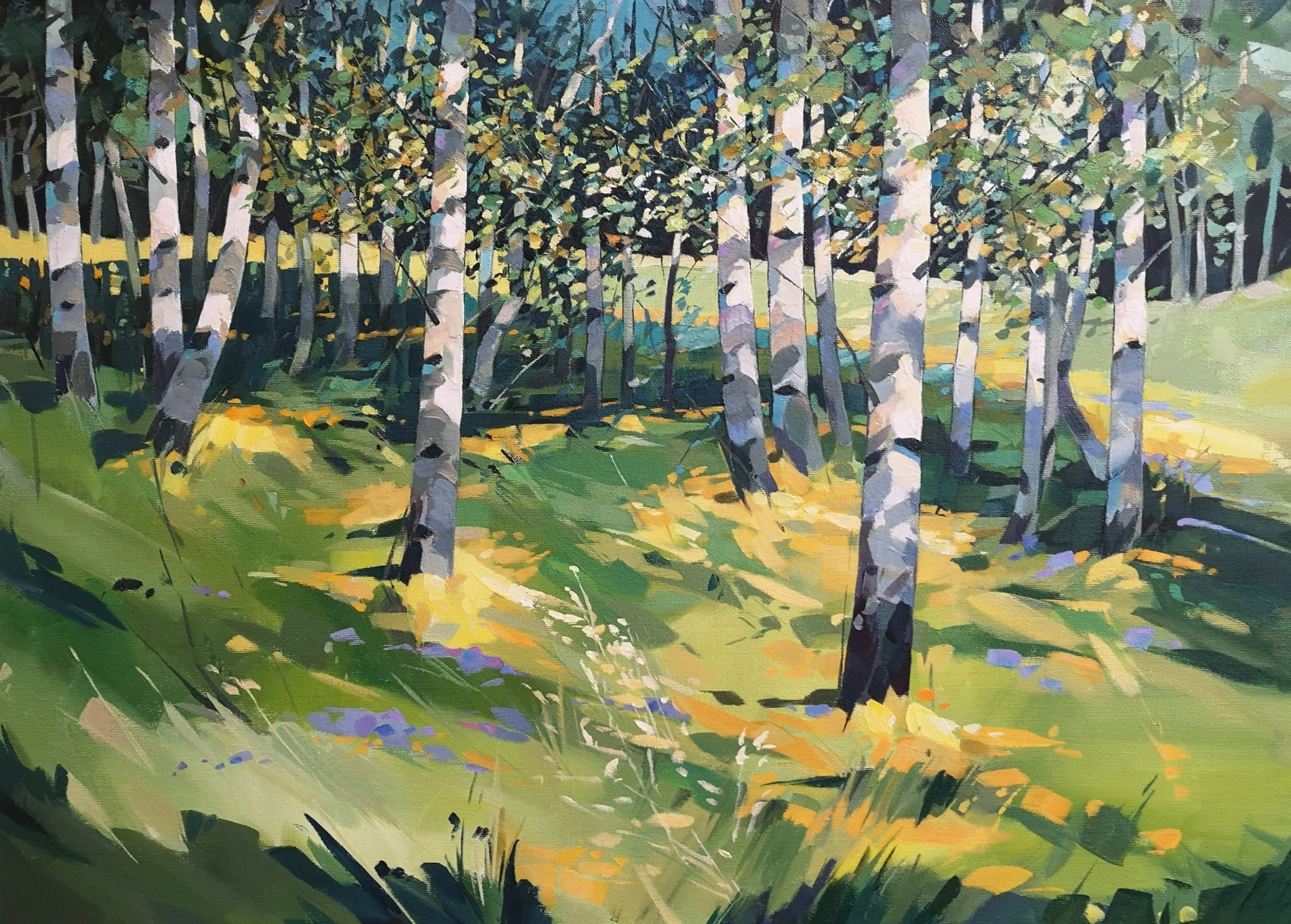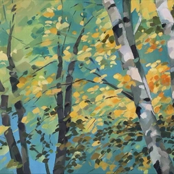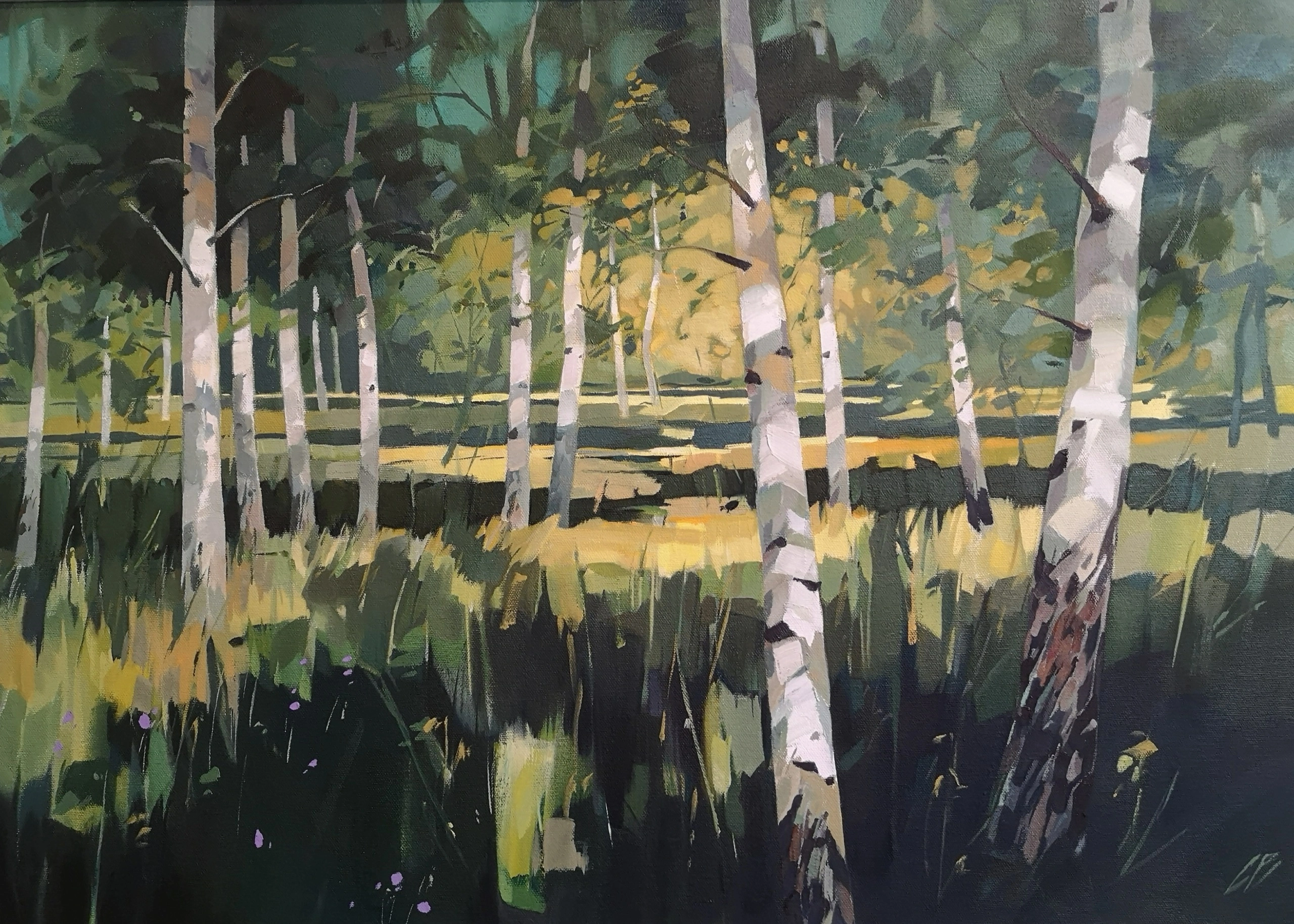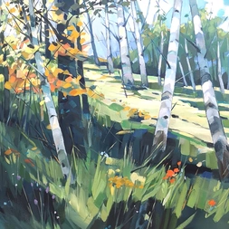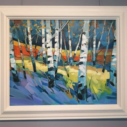 He now has time to concentrate on his own work, painting in a large studio in the garden of his home in Kincraig. His studies of birch woods are excellent examples of using light and shade. Genius!