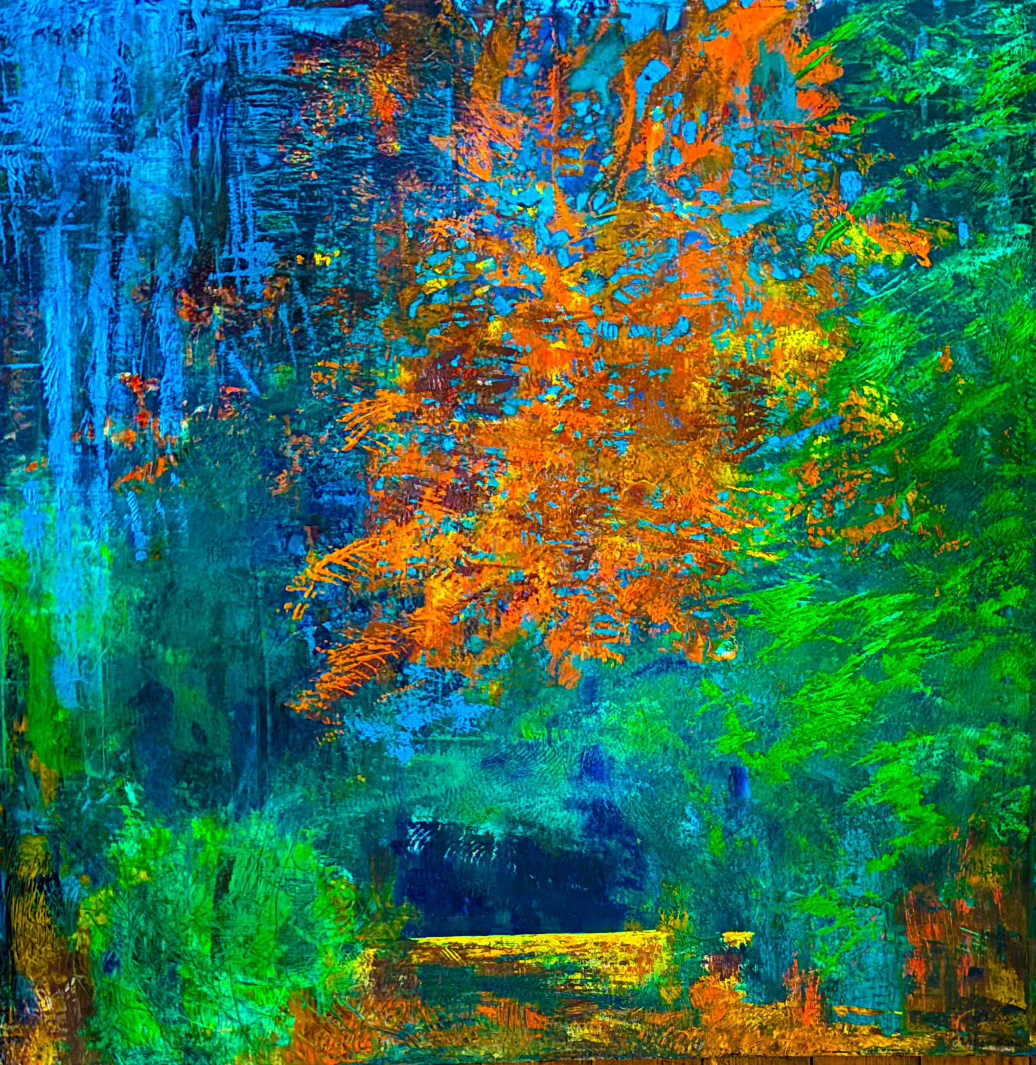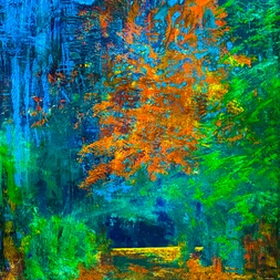 Carolyn is an acrylic artist based in The Highlands of Scotland. Over the years, she has developed her individual style. Her works colourfully weave themes of nature and patterns into images that have shades of pointillism – incorporating diamond and square shapes, as well as dots.