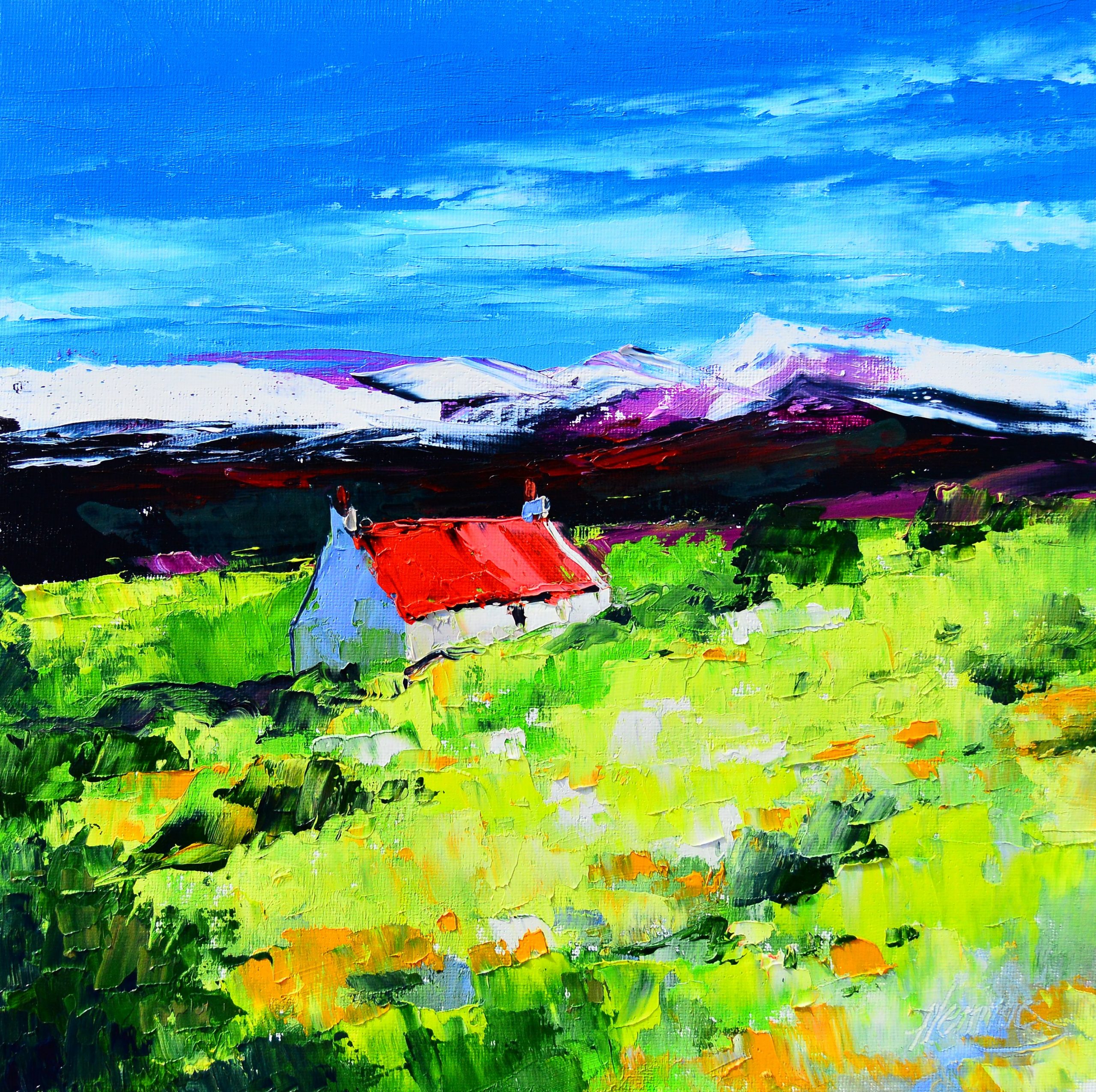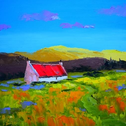Perthshire based, Kevin Fleming’s main themes are Scottish landscape/seascape from the west coast of Scotland, highlands, and occasionally east coast. He works in oil paint, using mainly palette knives to create a rich textured effect, with undiluted colours. All works are produced at 43cm framed and 30cm square unframed.