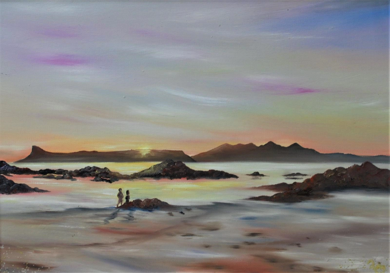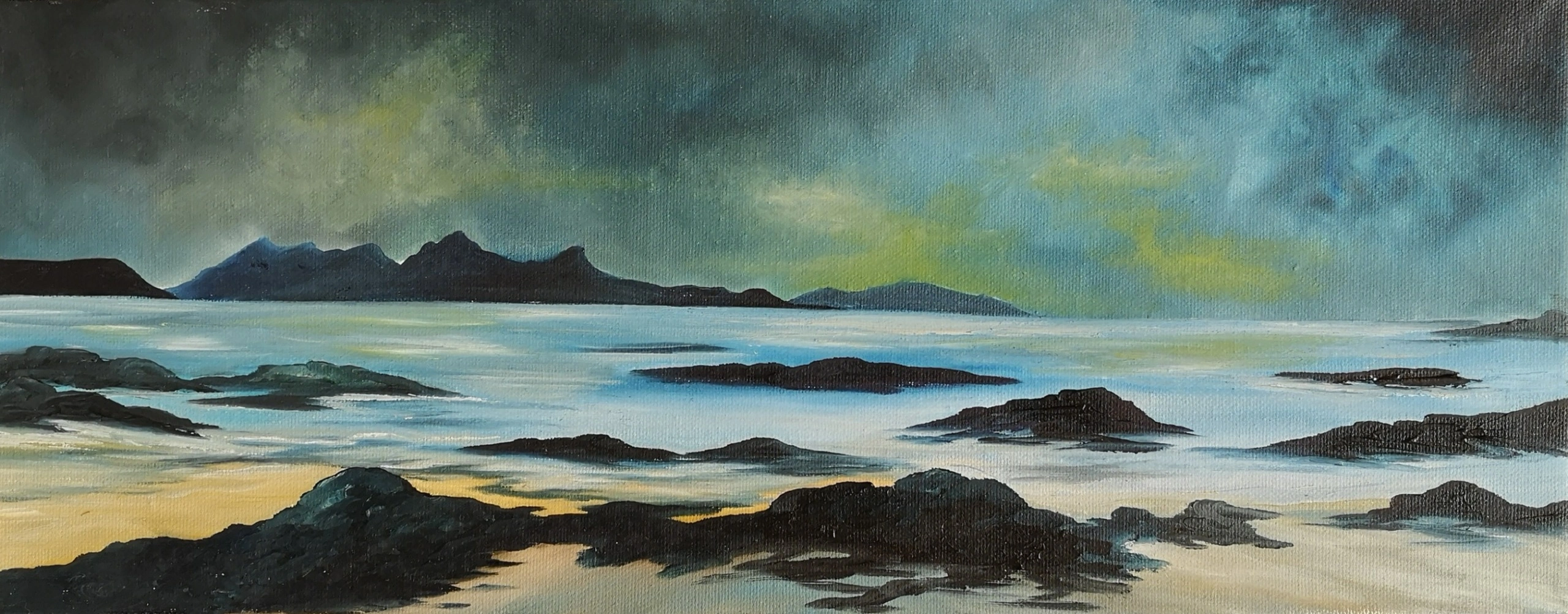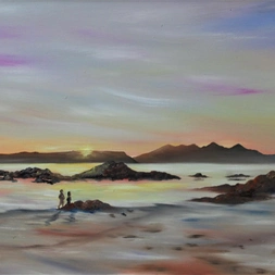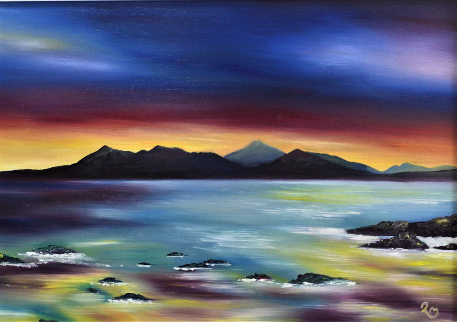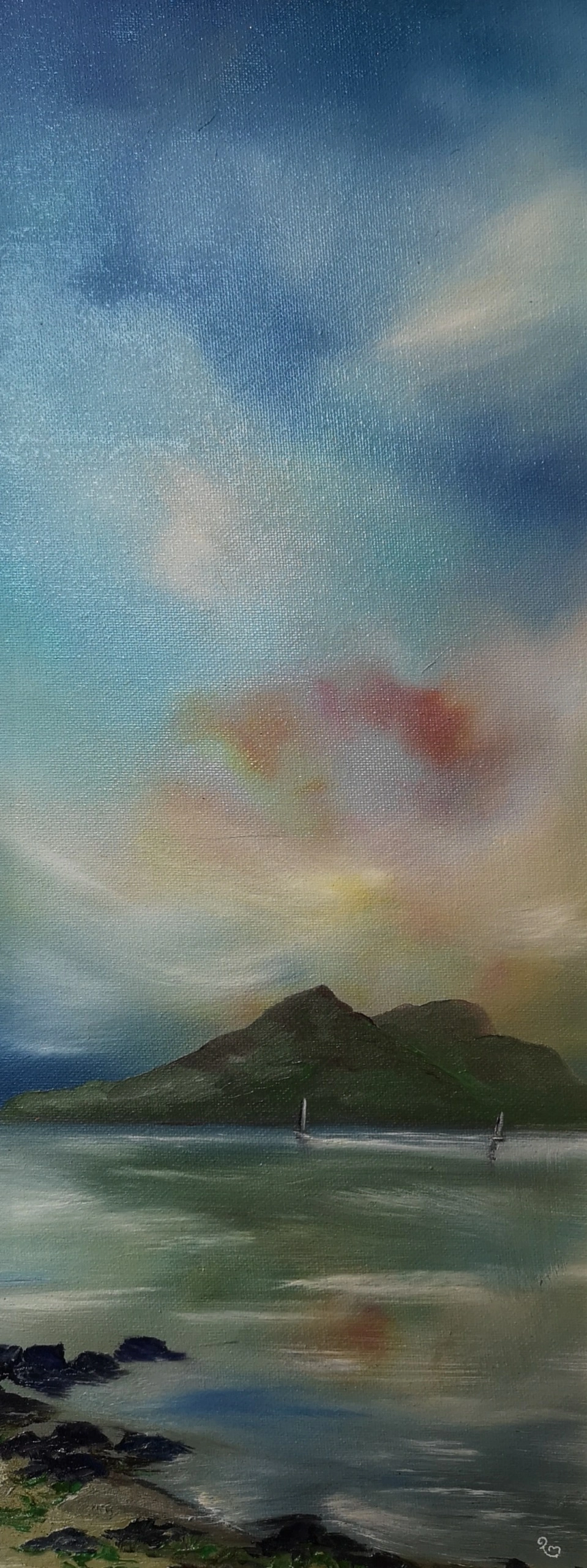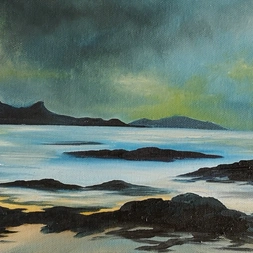 From this base she paints in both acrylics and oil paints, painting predominantly land and seascapes of Scotland.